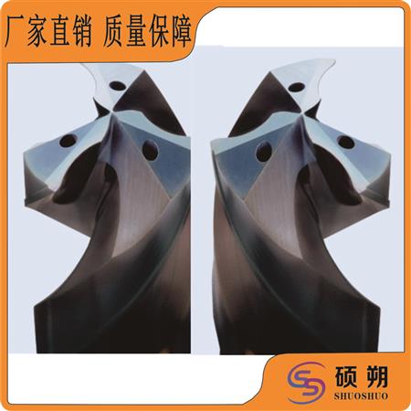SS/硕朔生产的钨钢内冷钻头有两刃及三刃,三刃钻头每刃的负荷降低,寿命可延长,也可以在保持同样寿命条件下,增加进给量,从而使生产效率提高。